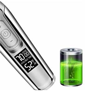 Não é à prova dágua, mas pode ser enxaguado na área da lâmina, desde que o aparelho esteja com a lâmina para baixo e o fluxo de água não atinja o botão e/ou tela LCD.