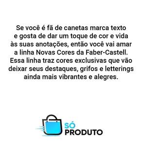 Seja para estudos, trabalho ou para uso pessoal, as canetas marca texto da linha novas cores da faber-castell são uma excelente escolha. Com a qualidade e desempenho incríveis da marca, você pode ter certeza de que suas anotações serão ainda mais eficazes e interessantes, tornando sua rotina mais produtiva e prazerosa.