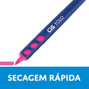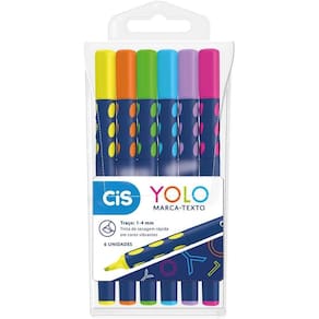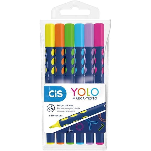 Marca Texto Cis Yolo. Estojo com unidades cores Neon. Cores Fluorescentes, Tinta à base de água, Formato ergonômico, Ponta Chanfrada e secagem rápida