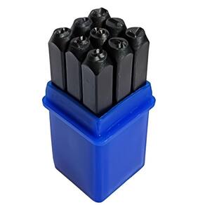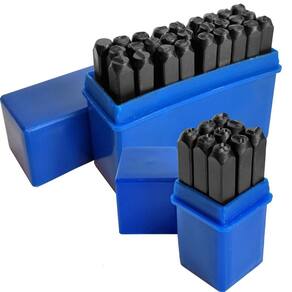Marcador Alfanumérico 36 Peças 5mm Pino Punção Marcação Aço Kit de marcar com 36 peças sendo 26 Letras de A a Z letras maiúsculas , & caractere especial e 9 números 0 a 9 . indicado para marcação e gravação manual de informações em aço, alumínio, cobre, couro e etc. - Marca: Guepar - Referência: BATER-5MM - Espessura 5mm - Alfabeto com 27 Letras de A a Z letras maiúsculas e & caractere especial - Algarismos com 9 peças números de de 0 a 9 0, 1, 2, 3, 4, 5, 6/9, 7 e 8 - Marcadores feito em aço com tratamento térmico de elevada dureza - Espessura da escrita é aproximadamente 3mm - Indicado para marcação e gravação manual de informações em aço, alumínio, cobre, couro, borracha, madeira e etc - Punções em aço são ideais para fazer marcação numérica em baixo relevo em uma peça que se deseja perfurá-la ou desmarcá-la para poder dar continuidade ao trabalho - Em determinados casos também serve de apoio e suporte para empurrar parafusos ou peças para determinado local - Kit de bater, não aceita aquecimento para marcação - Acompanha caixa plástica protetora para armazenamento - : 90 dias Marca: Não Informado