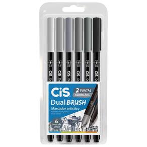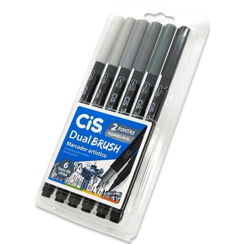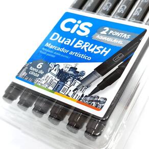 - Versatilidade: Marcador artístico DUAL Brush CiS com duas pontas – pincel e fina – para traços variados. - Tons de Cinza: Estojo com 6 cores perfeitas para sombreamento, ilustrações e lettering. - Aquarelável: Tinta à base de água que permite efeitos de degradê e mistura de cores. - Contém 6 Tons de CINZA - Canetas com DUAS pontas: Brush e Fine - Tinta à base de água - Caneta para lettering