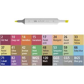 CIS GRAF DUO é um marcador com 2 pontas, sendo uma média e uma larga chanfrada. Possui a tinta pigmentada à base de álcool, com secagem rápida, não tóxica e permanente. Cores vibrantes que irão alegrar a vida dos fãs de papelaria, escolar, lettering, ilustrações, design de moda e arquitetura.