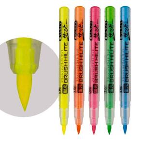 Marcador Brush Kuretake Zig estilo caneta, pincel com 5 cores fluorescentes, tintas impermeáveis após a secagem. Perfeito para as suas marcações.