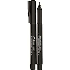 A caneta CD Marker Retroprojetor da Faber-Castell é multiuso: escreve em diversas superfícies, como madeira, metal, CD, plástico, vidro, papel e outros materiais. Sua ponta é porosa e tem traço médio de 1.0mm. A tinta é de excelente qualidade: secagem rápida e é resistente a luz.