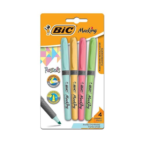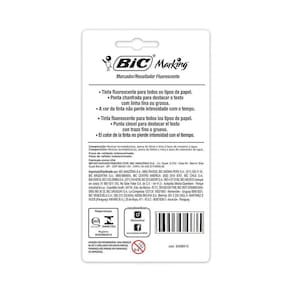 O Marcador de Texto BIC Marking veio para acompanhar a tendência de cores no mercado de papelaria. Suas cores são brilhantes e não desbotam com o tempo. Com ponta resistente, possibilita uma escrita firme, sem afundamento da ponta. Chanfrada, ela também permite a marcação em traçado duplo, fino para sublinhar e grosso para destacar. Grip emborrachado que permite melhor controle nas suas marcações. Possui tinta à base de água, não borra e não marca folha de trás. Torne seu dia-a-dia mais divertido com esse marcador!