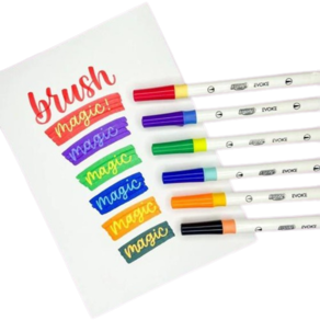 Marcador artístico Dual Magic Brush Pen Com 6 Cores Brw, de um lado brush, de outro VARINHA MÁGICA.