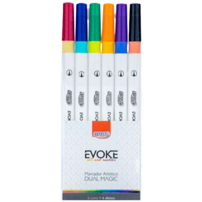 PRODUTO: Kit com 6 Canetas Brush Evoke Dual Magic Muda de Cor BRW BP0400 (6 cores + efeitos que mudam a cor)