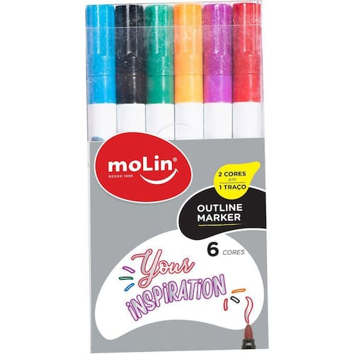 O Marcador Artístico Metálico Outline 6 Cores vem em uma bolsa com seis cores diferentes, proporcionando uma ampla variedade de opções para suas criações. Seja para fazer letterings, ilustrações ou detalhes em trabalhos artísticos, esse marcador é uma ótima escolha.