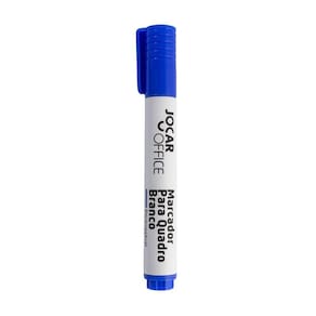Marcador para Quadro Branco Recarregável Tinta Azul Jocar Office tem ponta redonda de 5mm, escrita de traços de 23mm, tampa com clip, tinta de fácil remoção e secagem rápida.
