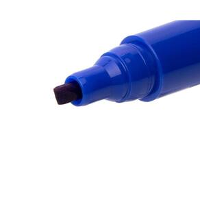 Marcador Permanente azul para diversos tipo de superfícies, como: CD's, plásticos, vidro, papel, madeira, metal e outros materiais. Tampa com presilha e ponta chanfrada que permite traço fino e grosso e sua secagem é rápida e resistente à água.