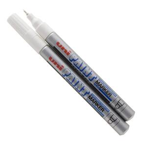 Caneta Uni Paint Marker Prata É um marcador permanente da Uni Paint que marca todo tipo de superfície. Este marcador industrial é a prova dágua, resistente a altas temperaturas sem escorrer ou borrar e escreve sobre superfícies como metal, plástico, tela, borracha, madeira, pneu sem perder sua cor forte e intensa. Possui ponta extra fina de 0,8mm ideal para pequenos detalhes.