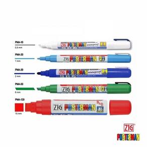 Marcador Ponta Fina Zig Posterman Básicas PMA-20 com 4 Cores O Marcador Zig Posterman é um marcador flexível que foi idealizada para ser aplicado em diversos tipos de superfície tornando-a a companheira inseparável de todo artista. Possui tinta com formulação a base de água, inodora e livre de xileno, tornando possível a sua utilização em espaços fechados como estúdios e ateliês.
