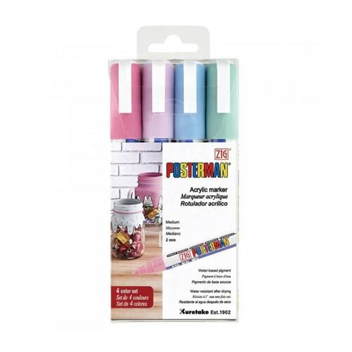 Marcador Ponta Fina Zig Posterman Pastéis PMA-30 com 4 Cores