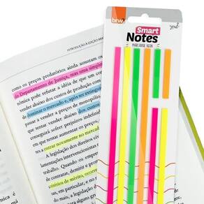 Marcador Smart Notes BRW Neon 8 Blocos 20fls BA1060 Marcadores adesivos de plástico em lindas cores pastel ou neon e bem fininhos, simulando marca textos, para te acompanhar em leituras, estudos e anotações importantes. São ótimos para marcar páginas ou destacar trechos importantes
