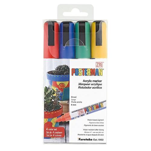 Marcador ZIG Posterman Fabricado do Japão é uma ferramenta versátil que foi idealizada para ser aplicada em diversos tipos de superfície tornando-a a companheira inseparável de todo artista. Sua formulação base água inodora e livre de xileno, torna possível a sua utilização em espaços fechados como estúdios e ateliês.