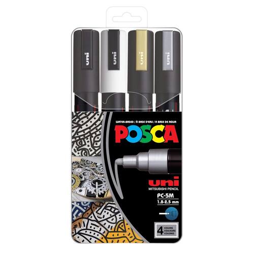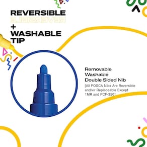 - As pontas reversíveis permitem que os marcadores Posca durem duas vezes mais do que outros marcadores; para revelar o outro lado das pontas, basta puxar a ponta de bala para revelar um dos dois lados, de 1,8 mm a 2,5 mm