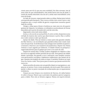 Anabela Terrasini vive em Sobrecéu, a mais poderosa das cidades marítimas. A vida previsível que ela leva chega ao fim com a notícia: o pai, o duque de Sobrecéu, está morto. No vazio de poder, em meio a conspirações que transformam velhos aliados em inimigos, Anabela compreende que o perigo que ela — e Sobrecéu — correm é muito real. Theo, o garoto sem sobrenome, vive sob o mantra: Nunca se envolver e nunca tomar partido. Mas quando a pequena Raíssa, uma menina muda que é a sua companheira de golpes nas ruas de Valporto, é sequestrada, Theo decide tomar para si a missão de resgatá-la. Na jornada, talvez ele encontre mais do que imagina e descubra que é hora de enterrar o passado — e o seu mantra — de uma vez por todas. Em Tássia, o comandante reformado Asil Arcan vive assombrado pelo conflito perdido vinte anos antes. Para Asil, a conta dos mortos é sua — e apenas sua. Em meio à miséria de uma existência sem sentido, ele passa a ser atormentado por estranhas visões: em um salão em chamas, uma menina pede por socorro. E se o chamado for verdadeiro? E se, junto com ele, houver também a chance de um recomeço? Maré de Mentiras acompanha a jornada de Anabela, Theo e Asil, em um mundo carregado de injustiças e marcado pelo ódio de velhas feridas. A longa travessia dos três é sobre sacrifício, perdas e amadurecimento. Também é sobre a importância de se escolher um lado e se unir à luta junto daqueles que amamos.