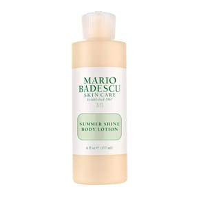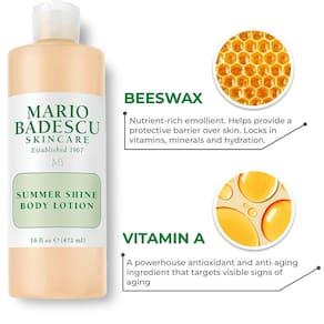 Loção corporal Mario Badescu Summer Shine enriquecida com vitamina A, leve e radiante, não oleosa, brilhante à luz de velas, ideal para todos os tipos de pele, 6 onças.