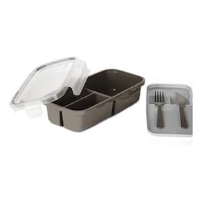 - Capacidade: 1,2 Litros - Acompanha: Garfo e Faca Polipropileno - 3 Divisórias - Material: Polipropileno e Silicone - Possui Travas Laterais