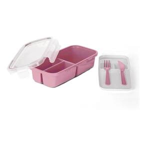 - Capacidade: 1,2 Litros - Acompanha: Garfo e Faca Polipropileno - 3 Divisórias - Material: Polipropileno e Silicone - Possui Travas Laterais