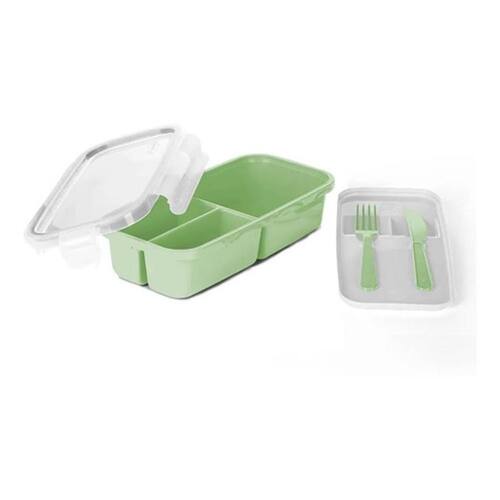 Marmita 3 Divisórias Com Kit De Talheres E Travas - Verde