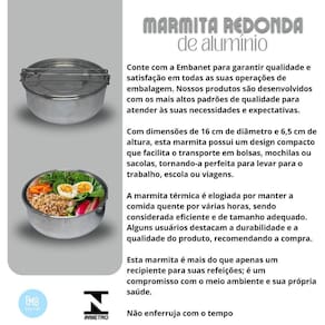 Desfrute de refeições deliciosas em qualquer lugar com a Marmita de Alumínio Premium da Embanet. Combinando estilo, praticidade e durabilidade, esta marmita é a escolha perfeita para quem busca uma solução conveniente para suas necessidades alimentares diárias.