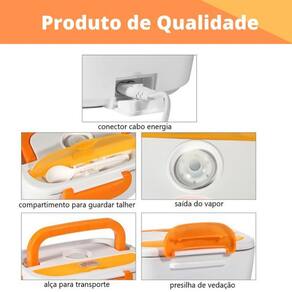 Especificações técnicas - indicador de luz, isso significa que o alimento está aquecendo - Potência: 40W - Tensão: 110V - Frequência: 50Hz - 60Hz - Cores disponíveis: laranja, azul, rosa, e verde selecionar a cor desejada no momento da compra - Capacidade: 1.05L caixa de arroz 0.6L, caixa de prato 0,45L - Dimensão da caixa: 170X108X240mm Marca: Não Informado