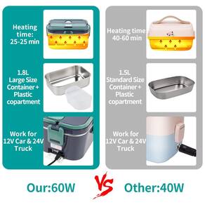 Alta potência de 55 W Programa de termostato de aquecimento eficiente para lancheira aquecida recentemente atualizado, 20 a 30 minutos no verão, 25 a 40 minutos no inverno, em comparação com o modelo antigo, pode economizar 2, 1 vez, vazamento à prova dágua de anel de vedação espessado Bolsa de mão mais segura e de alta qualidade à prova de água permite que você viaje, piqueniques, lancheira mais quente pode manter a comida quente
