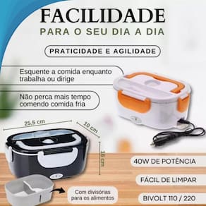 Trava nas laterais, Repartições para separação de alimentos, Suporte para talher, Alça para transporte e travas de segurançaLâmpada piloto