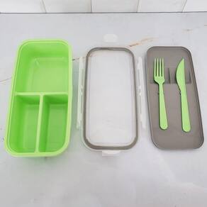 Marmita Hermética Verde com Garfo e Faca 1,2L Pote com Divisórias Tampa Plástico