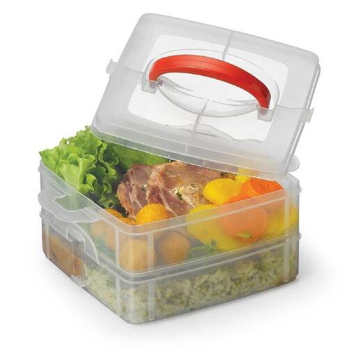 Com a Marmita Plástico Kit Box 2 Andares Divisórias, você terá uma opção prática e funcional para levar suas refeições para onde quiser. Não perca tempo e garanta a sua agora mesmo!