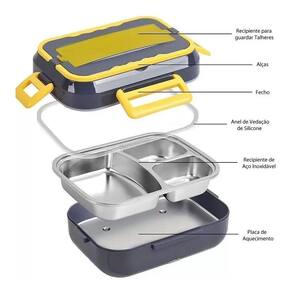 A marmita lancheira elétrica possui uma capacidade total de 1,5L.