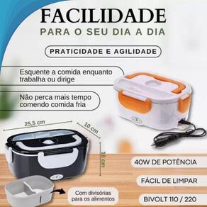 Aqueça sua comida enquanto trabalha ou dirige, no carro, caminhão, uber, escritório, casa ou escola com a marmita elétrica térmica portátil bivolt. Esta marmita é perfeita para quem busca praticidade, agilidade e conforto. Com um modelo compacto e prático, ela comporta até 1,05l de comida, ideal para levar seu jantar ou almoço completo a qualquer lugar. Use-a em seu carro, caminhão com saída 12/24v ou em casa e no trabalho com tomada 110/220v.