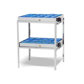 Em sistema de aquecimento “banho-maria” eles podem aquecer diversas quantidades de marmitas ao mesmo tempo, dispensando a utilização de micro-ondas e evitando filas de esperas no horário do almoço. São totalmente fabricados em aço inoxidável, inclusive seus cavaletes.