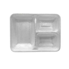 1 Pacote com 50 Bases de Marmitex de Isopor com 3 Divisórias