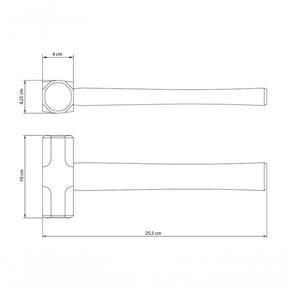Modo de uso: ;Use óculos, luvas e outros equipamentos de proteção individual (EPIs) de acordo com a tarefa a ser executada. Nunca golpear martelos e marretas de aço contra superfícies de dureza superior a 45 HRC. Tal procedimento pode ocasionar estilhaçamento ou lascas, comprometendo a do usuário. Nunca alterar as características da ferramenta (troca de cabos, esmerilhagem da cabeça, etc.) Nunca utilize um martelo com: desgaste excessivo, cabo solto ou , cabeça com rebarbas ou trincas. Nesses casos, faça a substituição do produto. Nunca realize modificações no produto, como solda na cabeça ou troca de cabo. Nunca golpeie um martelo contra o outro. Utilize sempre as faces de impacto para realizar o golpe. Nunca golpeie com as laterais, pois a têmpera está localizada somente nas faces de golpe. Observe sempre as aplicações de cada tipo de martelo antes do uso. Armazene em limpo e seco.