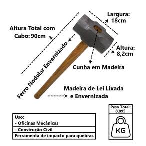 Marreta Premium Cabo e Cunha de Madeira Envernizado 8Kg, é uma ferramenta maior e mais pesada do que um martelo comum. É utilizado por quem precisa de força para quebrar ou demolir uma superfície. Sempre possui uma cabeça de ferro para causar ainda mais impacto.