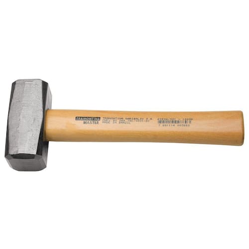 Quebrar uma parede pode ser muito difícil sem as marretas da Tramontina. Resistentes e seguras, são ferramentas certas para você que trabalha na construção civil ou com pequenos reparos. Orientações Cabeça forjada e temperada em aço especial, garantindo grande resistência ao produto.Perfeito balanceamento entre cabeça e cabo para aumentar o conforto e a segurança do usuário.O sistema de fixação da cabeça ao cabo por cunha metálica ajuda a aumentar a segurança do usuário.Acabamento jateado e cabeça envernizada oferecendo proteção contra oxidação.As marretas são submetidas a um processo localizado de têmpera para se obter uma dureza adequada na base de impacto que suporte o uso contínuo por longo períodos. Observações Use óculos, luvas e outros equipamentos de proteção individual (EPIs) de acordo com a tarefa a ser executada.Nunca golpear martelos e marretas de aço contra superfícies de dureza superior a 45 HRC. Tal procedimento pode ocasionar estilhaçamento ou lascas, comprometendo a segurança do usuário.Nunca alterar as características originais da ferramenta (troca de cabos, esmerilhagem da cabeça, etc.)Nunca utilize um martelo com: desgaste excessivo, cabo solto ou danificado, cabeça com rebarbas ou trincas. Nesses casos, faça a substituição do produto. Nunca realize modificações no produto, como solda na cabeça ou troca de cabo. Nunca golpeie um martelo contra o outro. Utilize sempre as faces de impacto para realizar o golpe. Nunca golpeie com as laterais, pois a têmpera está localizada somente nas faces de golpe. Observe sempre as aplicações de cada tipo de martelo antes do uso. Armazene em local limpo e seco. Características Gerais EAN13 7891114016895 DUN14 37891114016896 NCM 8205.20.00 Peso Líquido 1,0400 kg. Peso Bruto 1,0400 kg. Metragem 0,000853 m³. Dimensões Embalagem (Compr. X Larg. X Alt.) 262x 37x 88 mm. Dimensões Produto (Compr. X Larg. X Alt.) 255x 68x 37 mm. Dimensão Extra A 88,0 mm. Dimensão Extra B 255,0 mm. Dimensão Extra C 40,5 mm. Dimensão Extra D 37,0 mm. Peso 800 g