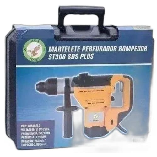 Martelete 1250w 110v Especificações do Martelete Perfurador Rompedor 7kg Frequência 50/60Hz Rotação 780 min Impacto 3800min Peso do produto: 5kG Função Rompedor Empunhadura frontal Embreagem de segurança Acompanha: 1 mandril, 1 carvão, 1 ponteira, 1 talhadeira e 3 brocas. Uso em construção civil, Departamentos de Manutenção e Instaladores em geral Operações de Rompimentos e pequenas demolições em Concreto e Alvenaria Características: - Velocidade para maior controle e versatilidade nas aplicações. - Sistema de impacto que permite furar concreto, alvenaria,pequenas demolições e outros materiais duros com extrema facilidade. - Mandril para um melhor desempenho em tarefas mais pesadas. - Empunhadura para um trabalho mais prático e preciso. - Acompanha maleta plástica para melhor armazenamento e transporte da furadeira. Especificações Técnicas Velocidade: 800 rpm Impacto: 3800 min Freqência: 50/60 Hz Capacidade de perfuração: Aço: 13mm Madeira: 40mm Concreto: 26mm Litens inclusos: 01 Martelete Perfurador Rompedor 7kg - 1250w 01 Maleta para Transporte 01 Empunhadeira 01 Ponteira 01 Talhadeira 03 Brocas 8, 10, 12 01 Mandril 01 Chave de Mandril 01 Borracha Aparadora de Pó 01 Pote de Graxa 01 Manual de Instruções. do vendedor: 90 dias Marca: Não Informado