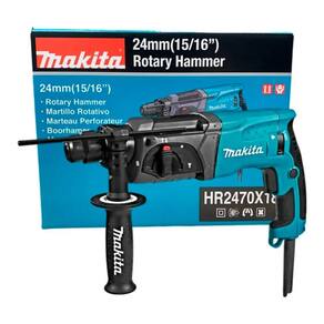 Ficha Técnica Modelo HR247 Tipo Martelete Combinado Potência 800W Tipo de velocidade Variável Velocidade de rotação 1.100 rpm. Capacidade máxima de perfuração em aço 13mm Capacidade máxima de perfuração em madeira 32mm Capacidade máxima de perfuração em concreto 24mm Impactos por minuto 0-4.500/min Nível de vibração 15.5 m/s² Incerteza 1.5m/s² Altura 21,4 cm Largura 8,4 cm Profundidade 37 cm Peso 2,9 kg