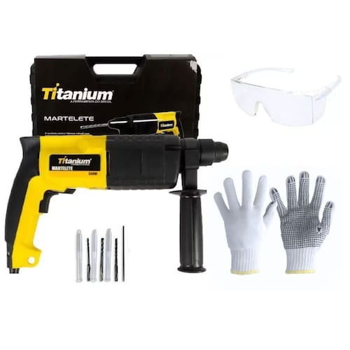 Martelete Perfurador 1,8j impacto SDS + Luva + Oculos Martelete Perfurador Rompedor 1,8j Titanium impacto SDS Características: Este Martelete Perfurador Rompedor 1,8j Titanium é o que você precisa para lidar com trabalhos pesados, seja você uma pessoa amadora ou um profissional. O seu funcionamento permite trabalhar em materiais mais firmes como tijolos, concreto, pedras naturais ou estruturas menos rígidas tais como madeira, plástico e metais, sendo possível pois conta com dois módulos, furar com ou sem impacto. O martelete é reversível e conta com um perfurador SDS, possibilitando a utilização para furação em ambos os sentidos. Conta com botão de travamento e é 100% rolamentada. A empunhadura auxiliar proporciona maior controle e conforto durante o uso, reduzindo a fadiga em projetos prolongados.Acompanha três brocas de diferentes tamanhos 6 mm, 8 mm e 10 mm e uma empunhadura auxiliar, garantindo que você tenha tudo o que precisa para começar a trabalhar imediatamente Especificações: Marca: Titanium Modelo: 07640/07641 Voltagem: 110V/220V Potência: 650W Rotação: :1060 rpm Impacto por minuto máx: 4800 rpm Energia de impacto::1,8 joules Altura:31cm Largura:7,5cm Comprimento: 33,5cm Peso: 3,7Kg + Luva Malha para Pedreiro 3 fios Pigmentada 9 Worker Características Equipamento de proteção individual EPI projetado especificamente para atender às necessidades dos trabalhadores da construção civil, como pedreiros, pedreiros azulejistas e outros profissionais envolvidos em atividades de construção, reforma e alvenaria. Essas luvas desempenham um papel crucial na segurança e no conforto dos trabalhadores, oferecendo diversas características importantes. Luva tricotada em fios de algodão, reversível, com punho de elástico. 3 fios. Indicada para proteção das mãos contra sujeira, ajuda na proteção contra o frio e onde haja necessidade de maior mobilidade e tato. Aplicação: Atividades com riscos leves na construção civil, logistica e armazenagem , colheita de frutas e legumes, jardinagem e indústria automotiva. Especificações técnicas Marca: Worker Modelo: WK- LTB3P - 3 Fios Tamanho: 9 G Dimensões: Altura: 4cm Largura: 12cm Comprimento: 12cm Peso: 55g + Óculos De Proteção Sky Wps0206 Para Proteção Deltaplus Características Os óculos de proteção SKY CLEAR da DELTA PLUS combinam estilo e segurança. Sua isenta de partes metálicas possibilita o uso em trabalhos com eletricidade. Suas hastes tipo espátula com abertura na ponta permitem a colocação de cordão. Oferecem proteção: UV400 que filtram 99,9% dos raios UVA/UVB até 380 nm, alto impacto e lateral. Vantagens - Proteção - UV400: Filtram 99,9% dos raios UVA/UVB até 380 nm - Resistente a alto impacto - Lateral - 0% metal - Isenta de partes metálicas - Hastes com abertura - Permitem a colocação de cordão Especificações técnicas - Marca: Deltaplus - Modelo: WPS0206 - Dimensões do produto - Altura: 5 cm - Largura: 6 cm - Comprimento: 15 cm - Peso: 27 g Itens inclusos: 1 Martelete 3 brocas 1 Empunhadura auxiliar, 1 Par de luvas Malha para Pedreiro 3 fios Pigmentado 1 Óculos De Proteção Sky Wps0206 Para Proteção Deltaplus