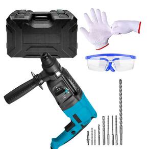 O conjunto acompanha um kit completo de acessórios, incluindo brocas, cinzéis, mandril, itens de proteção e uma maleta resistente, ideal para transporte e armazenamento. Uma solução prática e eficiente para quem precisa de uma ferramenta robusta, organizada e pronta para uso.