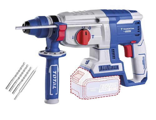 O Martelete Perfurador/Rompedor 20V SDS-Plus 1" (26mm) Brushless Tramontina by TOTAL é a ferramenta definitiva para quem exige potência e mobilidade em aplicações robustas. Projetado para perfurações e rompimentos em concreto, alvenaria e estruturas de alta resistência, ele entrega a força necessária para enfrentar os desafios de qualquer obra.