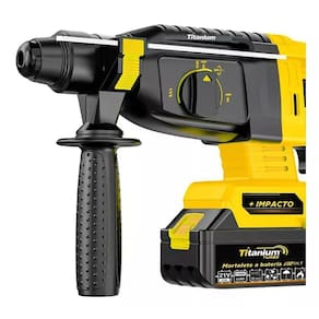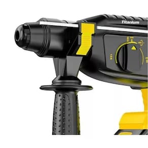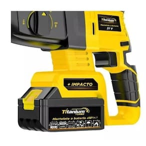 Marca: Titanium Modelo: 6151 Bateria: 21V / 15Ah Cor: Amarelo / Preto Joules: 800 J/s Nº máximo de impactos: 0-4550/min IPM Nº máximo de rotações nominais: 0-1800 RPM Diâmetro max. em concreto: 4 - 26 mm Diâmetro máx em metal: 13 mm Diâmetro máx.em madeira: 26 mm Sem escova Brocas SDS: 6,8,10,12,14 mm Ponteiro: 14x230mm Talhadeira: 14x230mm Peso: 2,6Kg