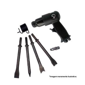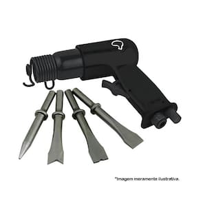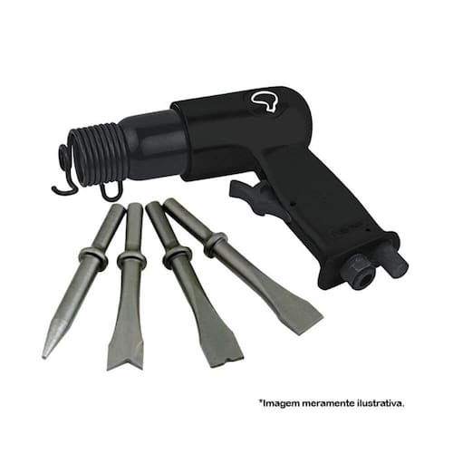 Especificações técnicas: Diâmetro da haste do cinzel: 10.2 MM (encaixe redondo) Velocidade livre: 4500 BPM Curso do martelo: 43 MM Consumo de ar: 4 CFM / 113 L/min Pressão do ar: 90 PSI / 6,3 Kg/cm² Entrada de ar: 1/4? Comprimento: 151 MM / 15 CM Peso: 1,65 kg