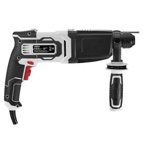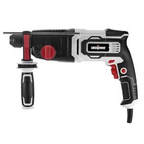 CARACTERÍSTICAS: 800 W, 3 J. Tipo de mandril: SDS +, embreagem de segurança. Funções: 4 (furadeira, furadeira, martelo, cinsel). Velocidade variável: 0-1000 rpm, 0-5300 bpm, avanço e ré, potência constante, travamento botão. Capacidade de perfuração em madeira: 30 mm, met