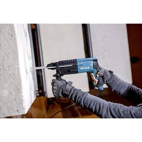 Martelete Rotativo SDS 620W com Bolsa WS3160K Wesco 220v SDSv - Possui seletor de controle de velocidade e alavanca para avançar ou reverter o sentido de perfuração. - Empunhadura ergonômica com revestimento de borracha. - Ideal para trabalhos pesados que envolvam a perfuração de cerâmicas e concretos em obras de manutenção ou construção. Também é empregado na demolição de pisos, colunas de concreto e vigas. Características: - Reversível: Mais controle no seu trabalho. - 3 Funções: Martelete, Furadeira e cinzel: Melhor custo-benefício 3 ferramentas em uma só. - Punho auxiliar: Tenha mais firmeza com este acessório. - Medidor de profundidade metálico: Meça a profundidade de forma fácil e ágil. - Maleta de transporte: Acompanha prática maleta para guardar sua ferramenta. - Velocidade variável: Maior comodidade para parafusar e furar. - Over Load: Proteção do motor evitando o desgaste. - Botão Trava: Continue furando sem precisar pressionar o gatilho. Especificações Técnicas: - Marca: Wesco - Referência: WS3160K - Potência: 620W - Tensão: 220V - Energia de impacto: 1.5J - Velocidade sem carga: 0 - 1.000/min - Tipo de mandril: SDS-Plus - 2 Funções: Furadeira com ou sem impacto Número de impacto: 0 - 4.600/min - Capacidade máxima de perfuração: Madeira 30mm Aço: 13mm Alvenaria: 20mm - Possui seletor de controle de velocidade e alavanca para avançar ou reverter o sentido de perfuração. - Empunhadura ergonômica com revestimento de borracha. - Reversível: Mais controle no seu trabalho. - Punho auxiliar: Tenha mais firmeza com este acessório. - Medidor de profundidade metálico: Meça a profundidade de forma fácil e ágil. - Velocidade variável: Maior comodidade para parafusar e furar. - Over Load: Proteção do motor evitando o desgaste. - Botão Trava: Continue furando sem precisar pressionar o gatilho. - Peso máquina: 2,3Kg - Peso bruto: 4 Kg - Garantia: 1 ano Pelo Fabricante . Acessórios inclusos: - 1 Martelete Rotativo Perfurador. - 1 Empunhadura auxiliar. - 1 Limitador de profundidade. - 1 Empunhadura auxiliar. - 1 Manual em português e certificado de garantia. - 1 Bolsa. Ean: 6924328312550