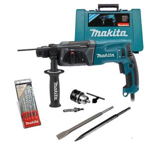 Martelete sds-plus makita hr2470 800w + acess e brocas vídea Voltagem: 220v Martelete combinado + maleta, talhadeira, ponteiro, adaptador sds para mandril 1/2, mandril com chave e jogo de brocas vídea