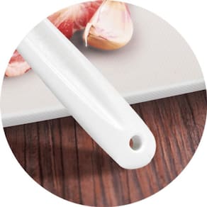 Benefícios Auxilia preparo de alimentos e temperos Também útil para amaciar bifes Um lado liso e outro com dentes Plástico de alta qualidade não quebra na hora do uso Cabeça robusta