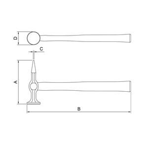 Cabeça forjada em aço carbono especial. Têmpera nas faces de impacto. Base e pena polidas e envernizadas. Cabeça com acabamento jateado. Uma extremidade da cabeça com superfície plana e outra com pena. Fixação por cunha metálica. Cabo de madeira envernizado. ASME B107.56. Os martelos são montados em prensas hidráulicas e a fixação da cabeça do martelo no cabo é melhorada com a inserção de uma cunha metálica. A resistência da fixação é aprovada mediante os ensaios de tração. Os martelos são submetidos a um processo de têmpera localizada para ter uma dureza adequada na face de impacto e nas penas, a fim de suportar o uso contínuo por longos períodos. Ensaios de dureza são realizados periodicamente para garantir a qualidade das peças produzidas. A fim de verificar a integridade do material após o tratamento térmico aplicado nas cabeças de martelos e marretas, são realizados, ainda, os ensaios de impacto e análise de partículas magnéticas. Restauração e moldagem de chapas, principalmente para carros que colidiram. As ferramentas são produzidas e testadas conforme normas específicas.